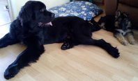 Your pup is adorable. I just wanna cuddle him?Yep, Izzi is the German shepherd. Noof is a Newfoundland.