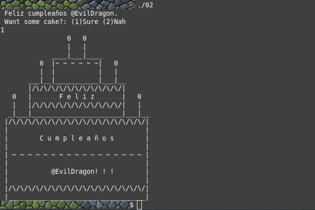 write(6,*) 'Feliz cumpleaños @EvilDragon.'