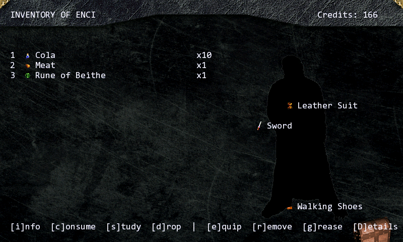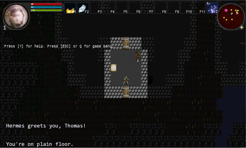 It seems difficult to collect enough food in the catacombs. And I keep dropping my equipped weapon due to weakness. It seems to be necessary to consume several food items to regain strength. I like needing to eat in roguelikes, but I want to add a "hungry" warning Hstatus text) so that I can return to the temple if food is low.