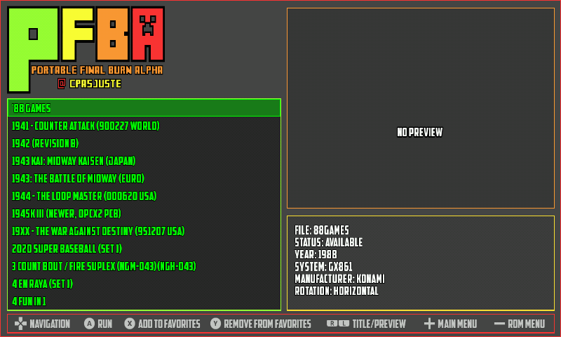 This version of FBA is maintained by Cpasjuste, and is multiplatform (Vita, RPi, Linux...), with optimisations for ARM devices.