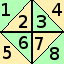 8 bits, indicating which sides of the tile are "open" (0), i.e. air, and which ones are "closed" (1), i.e. wall. The first 4 bits describe the top half of the tile, the second 4 bits describe the bottom half, in the order left-side top half, top-side left half, top-side right half, right-side top half, then a dash, then left-side bottom half, bottom-side left half, bottom-side right half, right-side bottom half.