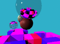 my ray tracer is coming along. i now have a recursive octree-like Geometry which can be procedurally generated. there are some bugs (from certain angles, you can see through edges of the octree geometry). but it's running decently fast on my laptop for the terrible resolution i put it at (200x150). i use SDL to scale it up, however, so i don't have to squint to see it :)