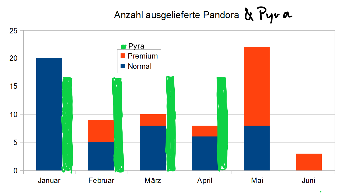 Sure. Base on the numbers from people reporting in this forum, we average approx. 17 units per month. Based on these numbers, we are at 220 on christmas. On the following diagram, you can see, that everything is as usual. The most funny thing for me, pyra should make everything different than pandora, but at the end, everything is exactly the same. (with one exception: craig is not involved). BTW: last "official" newspost from January 9th?